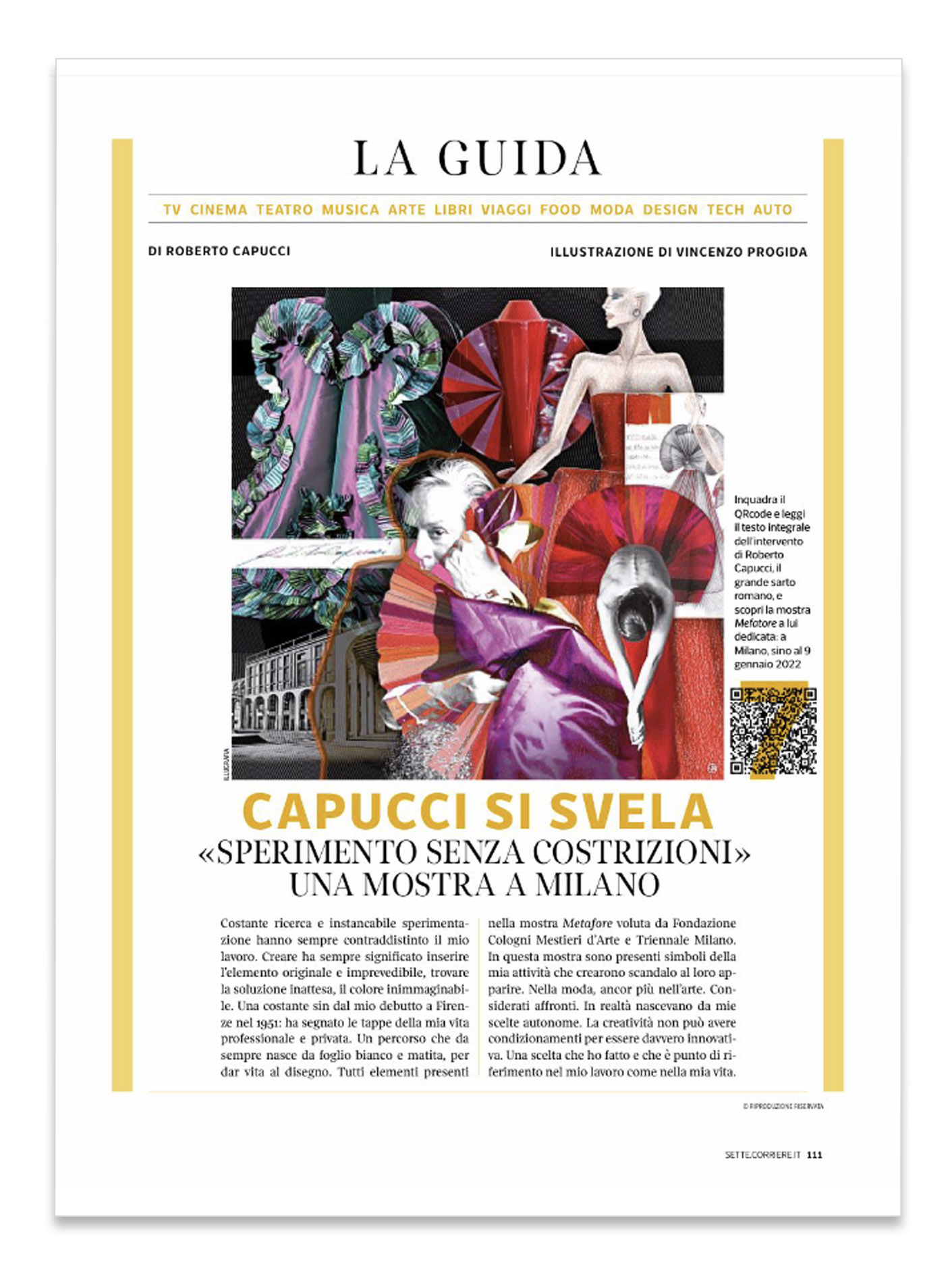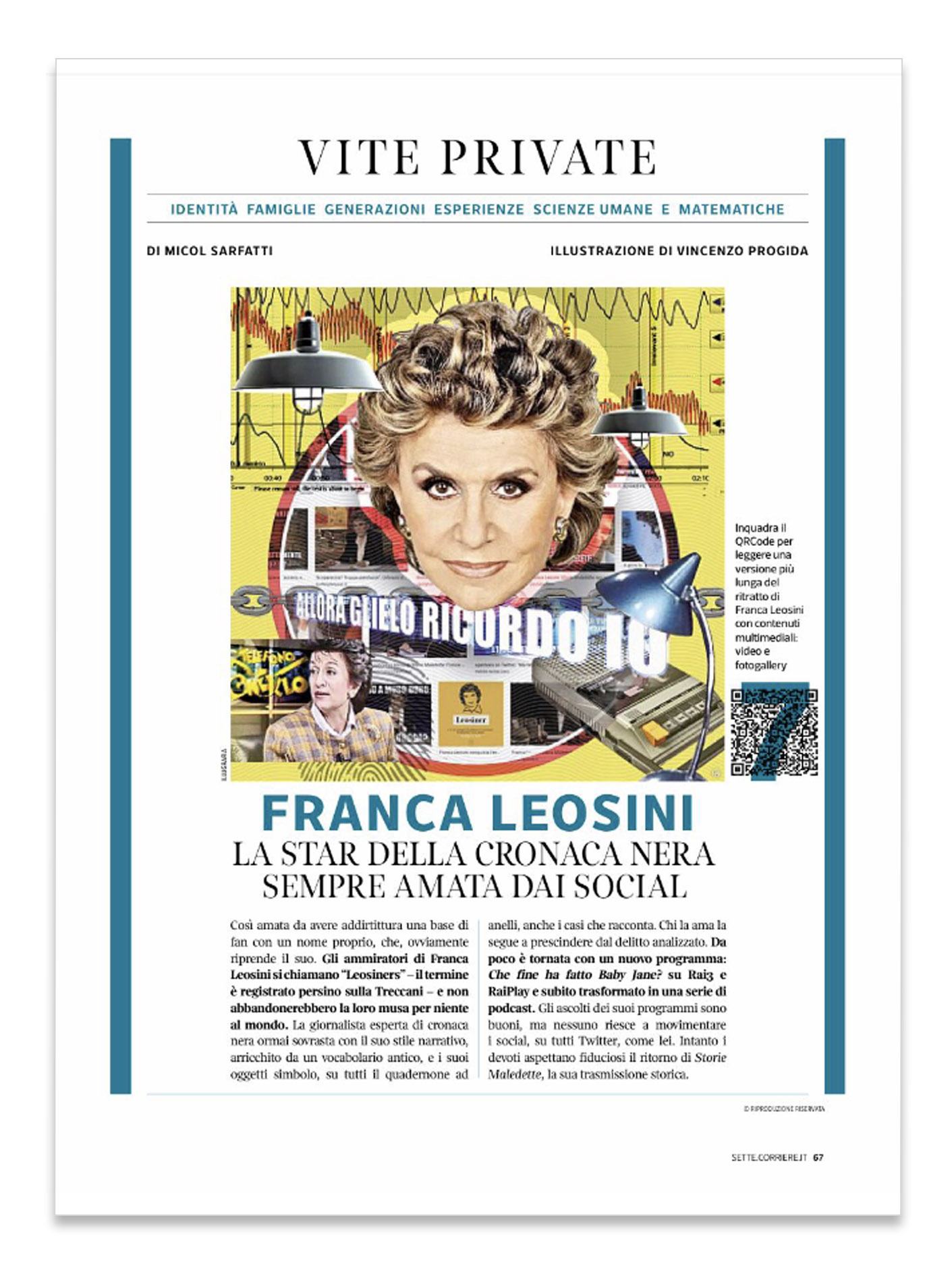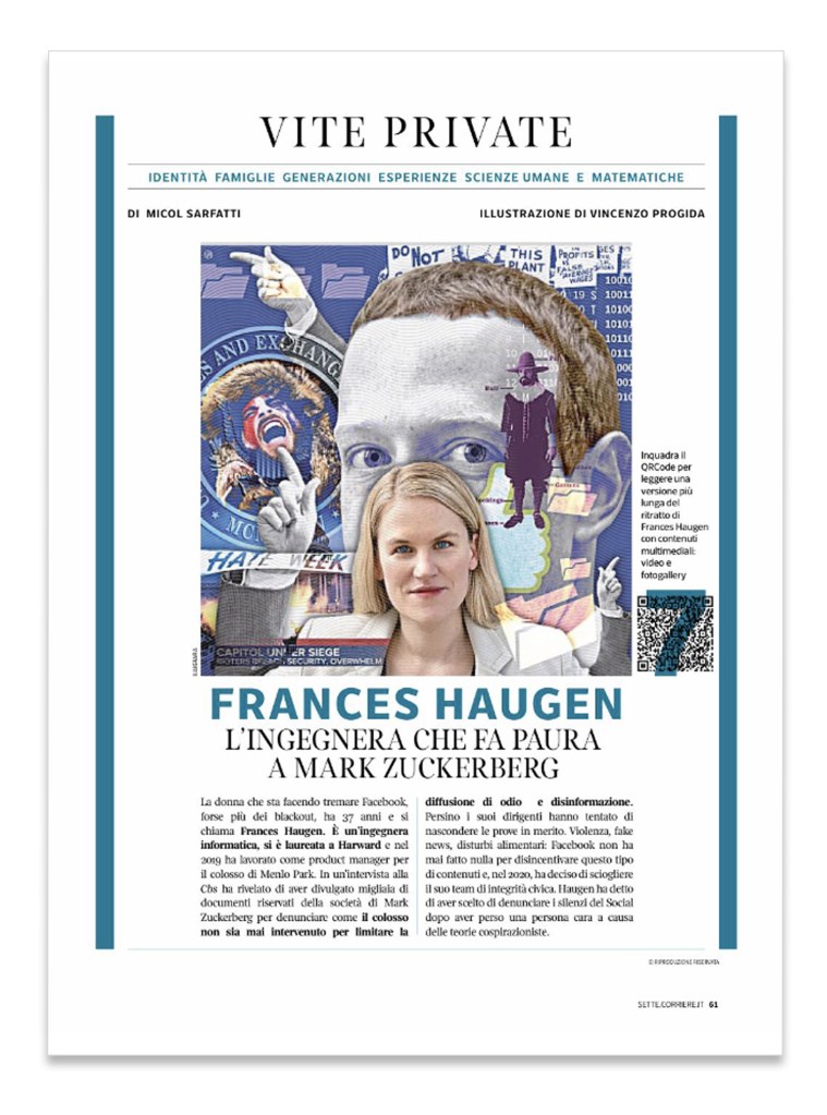 7 Magazine / 2021 Magazine 7 is the weekly magazine of Corriere della Sera Billie Eilish Harry Potter 30 years reunion Italian holidays Jeff Bezos Casta Diva – Vincenzo Bellini Fast and Furious 9 Genius: Aretha Franca Leosini Zerocalcare Roberto Capucci at Triennale di Milano Martin and Francesca Scorsese Emmanuel Macron Luigi Ghirri and Mustafa Sabbagh Farfalle azzurre Welcome back to museum Caterina Caselli Sergio Marchionne Frances Haugen © 2021 Illugrafia Vincenzo Progida